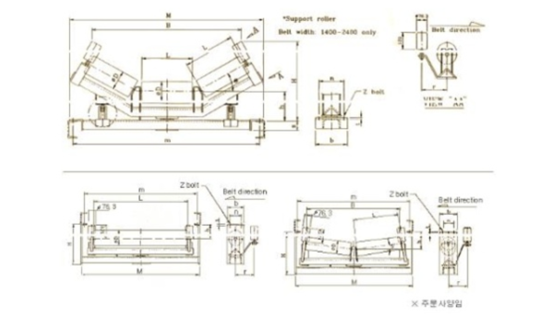3단형 벨트컨베이어용 롤러 Belt Conveyor Roller